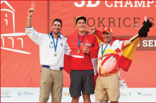 E mentre la squadra femminile (Barbaro, Franchini, Noziglia) ottiene la prima posizione con 2366 punti (contro i 2183 della Spagna, seconda), al maschile la classifica è invertita con il trio spagnolo al comando per soli due punti sugli azzurri (Faletti, Noceti, Seimandi).