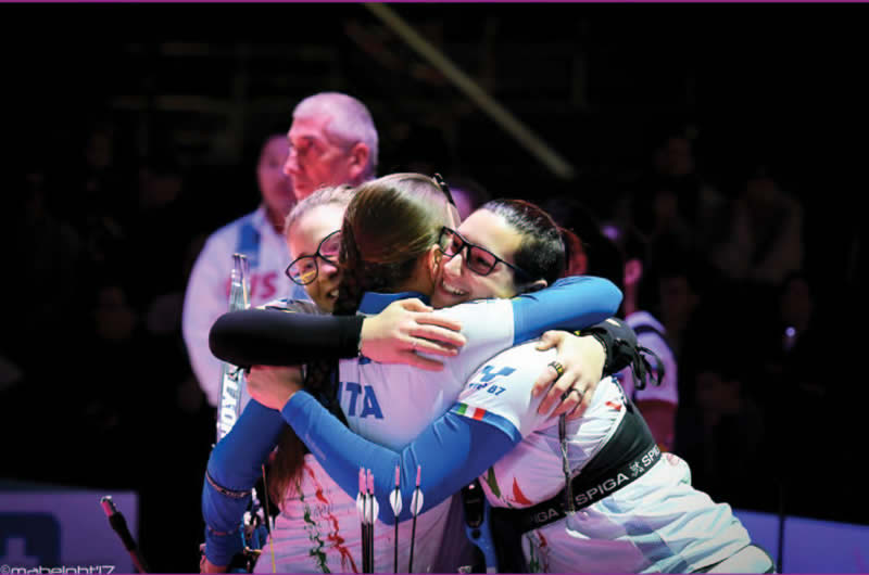 Un successo per tutta la Fitarco diviso quasi equamente tra individuali e squadre con grandi imprese, considerando che i numeri degli Europei erano di tutto rispetto: 237 arcieri iscritti e 27 le Nazioni rappresentate. Tra tutte però ha spiccato il volo l’Italia grazie agli arcieri più attesi come David Pasqualucci, primo sigillo di peso nelle gare indoor da Senior, e Tatiana Andreoli, quasi imbattibile ormai da anni sui 18 metri nelle classifiche giovanili. A brillare luminosa nel firmamento di Vittel è stata anche la stella di Jacopo Polidori, che dopo i successi in patria, ha alzato l’asticella e si è permesso il lusso di battere in finale quel Mike Schloesser che dopo il record mondiale solo eguagliabile dagli arcieri del futuro è stato rinominato “Mister Perfect”. Questa volta di perfetto in Francia c’è stata la prestazione di Polidori e di quasi tutti gli arcieri azzurri perché, oltre ai successi individuali, a far suonare l’inno di Mameli o a salire sul podio sono state anche le squadre. C’è un dato che rende al meglio l’idea dello strapotere azzurro: su sette squadre, tra terzetti e mixed team, sei si sono portate a casa una medaglia.