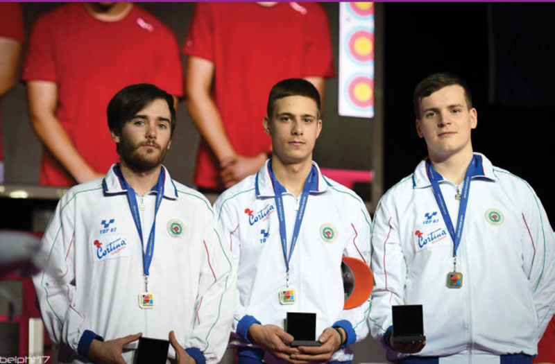 Gloria azzurra anche tra i compound junior con l’inossidabile trio tutto griffato Kappa Kosmos formato da Jesse Sut, Viviano Mior e Manuel Festi che guadagnano l’argento sconfitti nel terzo round di giornata tra Italia e Danimarca con il risultato di 232-231.