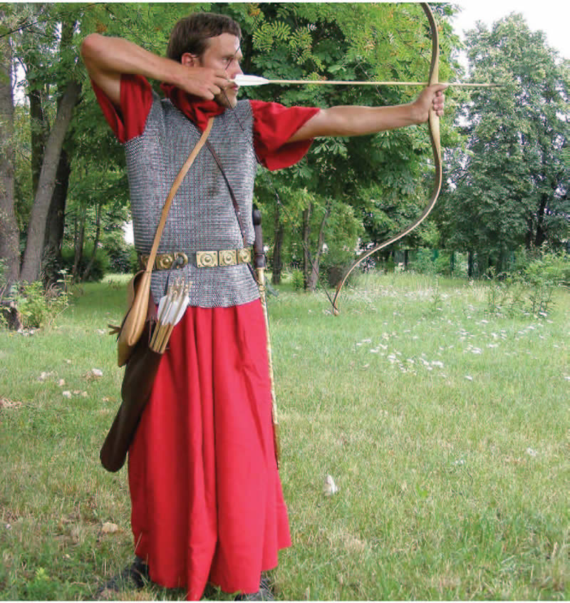 La battaglia si rivelò un disastro per le forze romane in Medio Oriente, ma fu di grande lezione. Nel I sec. d.C. gli arcieri a cavallo erano già presenti nell’esercito romano e sostennero perfino battaglie contro le tribù germaniche del Nord Europa. La consueta arma degli arcieri romani, sia per le unità di fanteria che di cavalleria, era l’arco composito, anche se Vegezio riferisce di formazioni dotate di “arcubus ligneis” (arco in legno), che probabilmente venivano realizzati secondo la tradizione nord-europea dell’arco lungo. È stato ventilato dagli storici che per la maggior parte gli archi compositi romani fossero asimmetrici, con la parte inferiore più corta rispetto a quella superiore. Nel V sec. d.C. vi sono stati numerosi reggimenti di cavalleria romana addestrati a usare l’arco come un supplemento a spade e lance, ma i Sagittarii veri e propri sembra utilizzassero l’arco come arma primaria piuttosto che come dotazione supplementare. Secondo il Notitia dignitatum, la maggior parte delle unità di Sagittarii, soprattutto montati a cavallo, erano di stanza nell’impero orientale, o in Africa. La loro opera si dimostrò preziosa anche in Europa, contro gli Unni. Dalle cronache di Procopio e dal manuale di arte militare Strategikon, opera dell’imperatore bizantino Maurizio, il più efficace organico posto in campo dagli eserciti romani era quello dei cavalieri, molti dei quali armati di archi. Dopo la caduta dell’Impero di Occidente, gli eserciti romani orientali hanno mantenuto la loro tradizione di tiro con l’arco a cavallo attraverso i secoli.