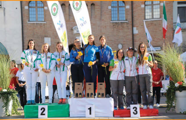 I TITOLI A SQUADRE ARCO OLIMPICO – Primo titolo italiano a squadre maschile per la Iuvenilia in gara con un terzetto di livello internazionale come quello formato dagli avieri Luca Melotto, Amedeo Tonelli e Marco Morello. I tre arcieri battono i campioni uscenti Arcieri Torrevecchia (Mandia, Caruso, Molfese) 6-2. Terzo posto per gli Arcieri Re Astolfo (Malavasi, Parenti, Poppi) vincenti 6-2 sugli Arcieri Montalcino (Montalto, Pagliantini, Tarducci). Tornano sul tetto d’Italia femminile 29 anni dopo l’ultima volta gli Arcieri Torrevecchia. Chiara Rebagliati, Claudia Mandia e Margherita Di Silvestro firmano il successo per 5-1 contro gli Arcieri Monica (Frangilli, Monzani, Rota). Bronzo agli Arcieri Montalcino (Focacci, Landi, Gianfelici) dopo lo shoot off 5-4 (24*-24) col Kappa Kosmos Rovereto (Fedrizzi, Ioriatti, Violi).