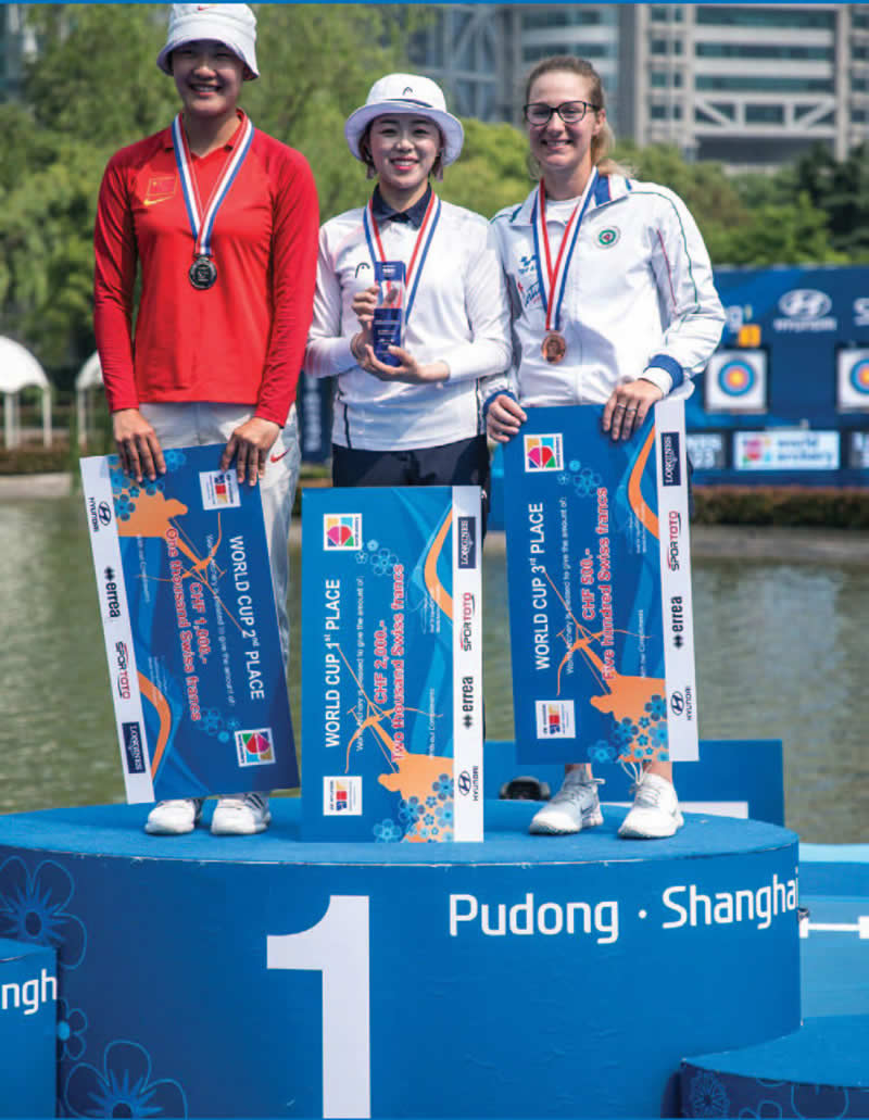 GLI ALTRI PODI E I PRIMI QUALIFICATI PER LA FINALE DI SAMSUN – A Shanghai domina in lungo e in largo la Corea del Sud che tra individuale e squadre si prende ben 10 medaglie di cui 6 d’oro. Nell’arco olimpico maschile vince l’oro Kim Woojin battendo 6-2 lo statunitense Brady Ellison. Terzo il coreano Lee Woo Seok grazie al 7-3 sul giapponese Takaharu Furukawa. Nel femminile, detto del terzo posto di Vanessa Landi, l’oro va alla coreana Chang Hye Jin dopo il 6-0 sulla cinese Qixuan An.