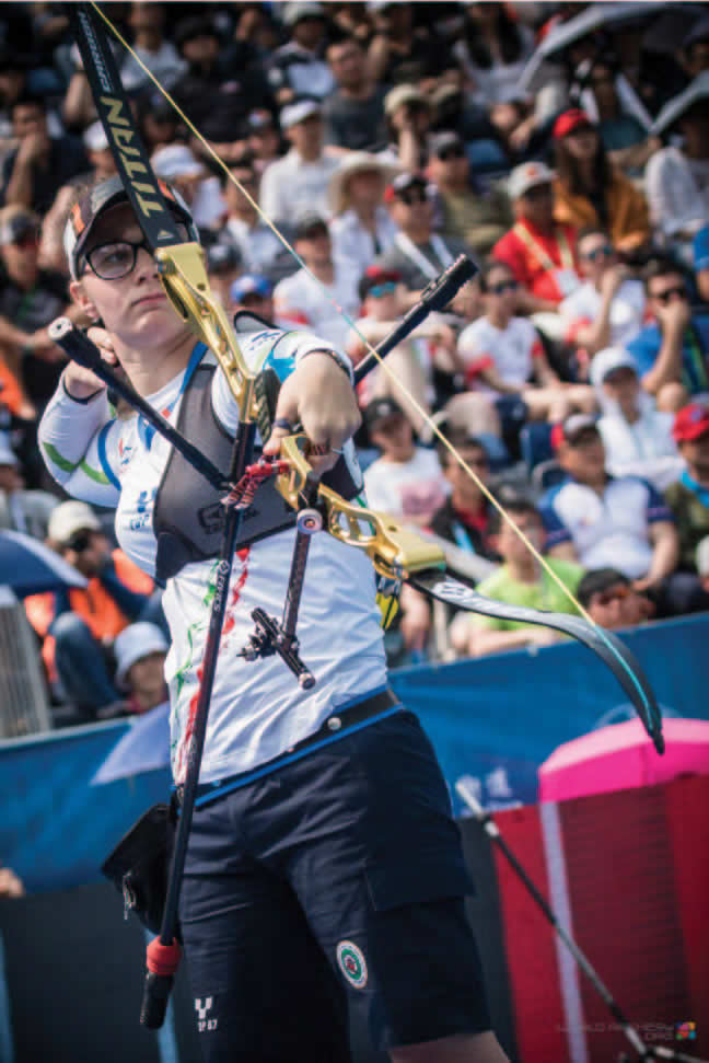 Mentre Pagnoni volava veloce verso la finale, nelle sfide dell’arco olimpico faceva strada anche Vanessa Landi. La campionessa mondiale Junior in carica inizia la sua gara con il 38esimo posto in qualifica, e fino a qui niente di spettacolare, ma la toscana il meglio di sé lo riesce a dare sempre negli scontri ed è proprio nelle battaglie uno contro uno che le avversarie capiscono di che pasta è fatta la giovane italiana. Il 6-0 sulla spagnola Lopez è il primo passo, il secondo è il 6-4 sulla giapponese Kato, poi il livello sale e Landi si fa trovare più che mai pronta eliminando prima la coreana numero 6 del tabellone Lee Eun Gyeong 6-4 e ripetendosi poi contro la russa Ksenia Perova, una che il 2017 lo ha chiuso vincendo il titolo mondiale individuale a Città del Messico e chiudendo seconda la finale di World Cup di Roma.