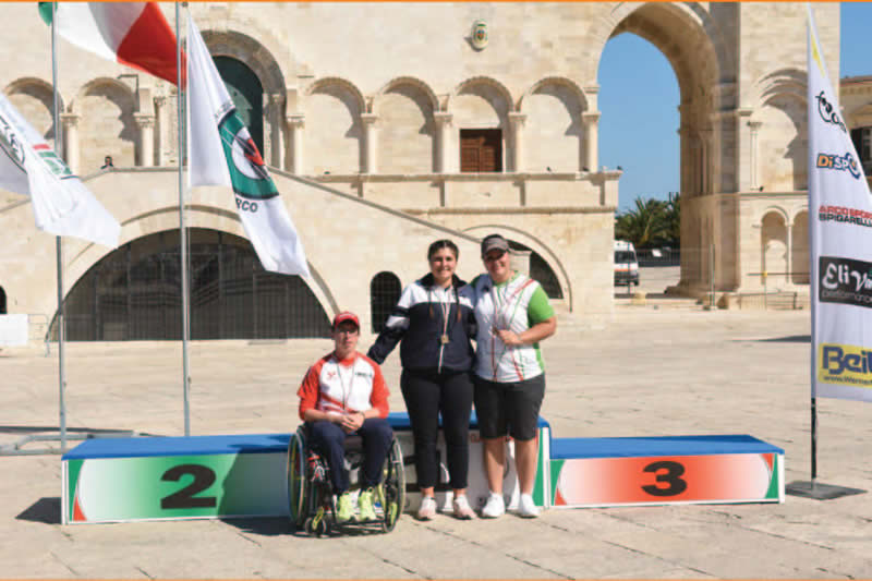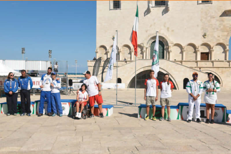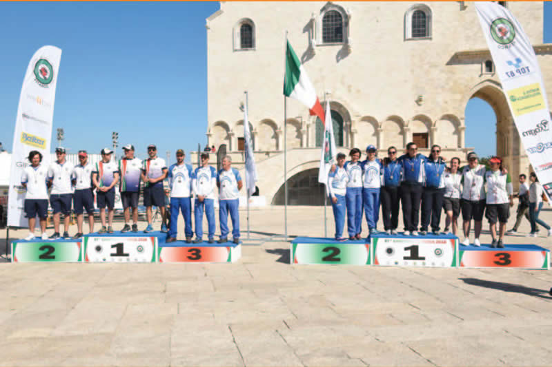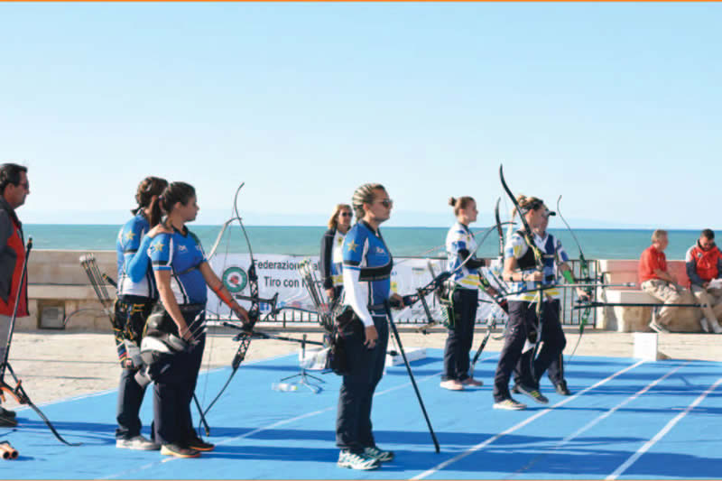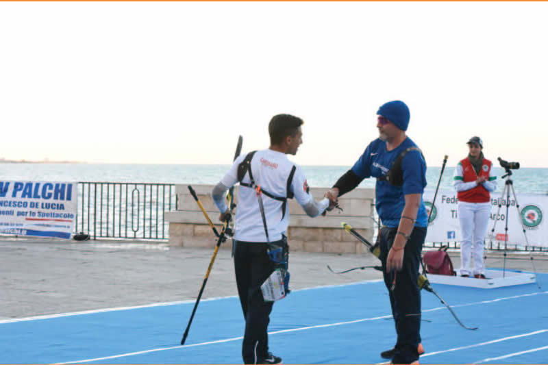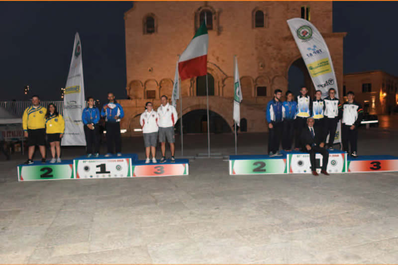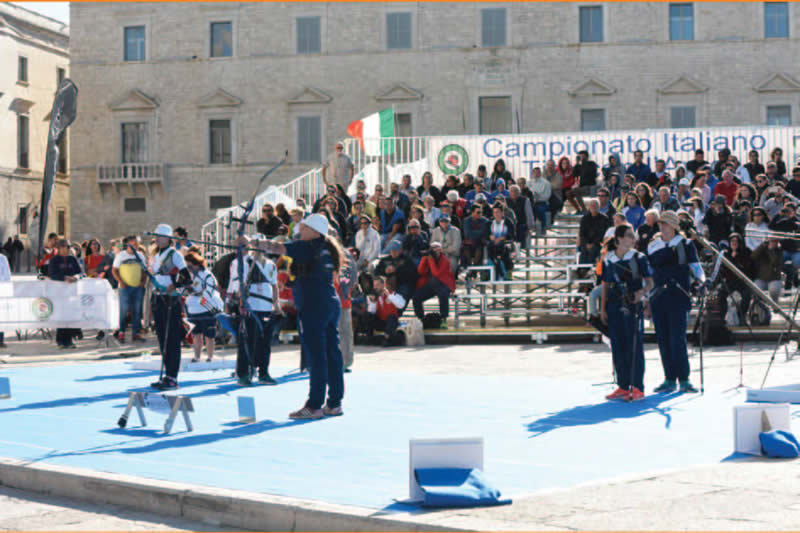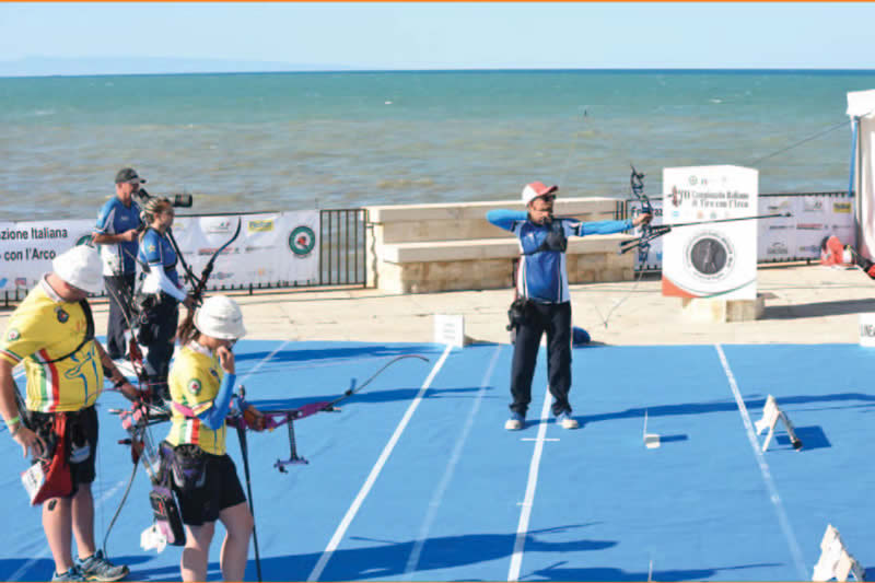 Infine una nota sul luogo delle sfide valide per i titoli assoluti. Il campo delle finali, allestito lungo le mura della Cattedrale di San Nicola Pellegrino a Trani è stato probabilmente uno dei più belli e suggestivi luoghi dove è stato organizzato un Campionato Italiano. Completamente affacciato sul mare e quindi esposto al vento, ha reso i match certamente difficoltosi per le folate che hanno spirato incessantemente sugli atleti, mettendo a dura prova le prestazioni individuali e a squadre, tanto da costringere i giudici di gara ad allungare i tempi di tiro per permettere agli arcieri di gestire meglio tale condizione. Una situazione che però non ha tolto fascino alle fasi clou della competizione che, grazie al maxi schermo e alla tribuna allestita alle spalle della linea di tiro, ha permesso a tantissimi turisti di seguire le sfide per i tricolori assoluti con uno sfondo paesaggistico e architettonico davvero memorabile. Le emozioni per la conquista delle medaglie rimarranno nel cuore di chi le ha conquistate, ma lo stesso sarà per chi ha assistito alla manifestazione dal vivo e per chi ha seguito da casa le gesta degli atleti su YouArco che, come di consueto, ha trasmesso i match validi per i tricolori permettendo a tutti gli sportivi di godere di un doppio spettacolo: agonistico e d’immagine. •