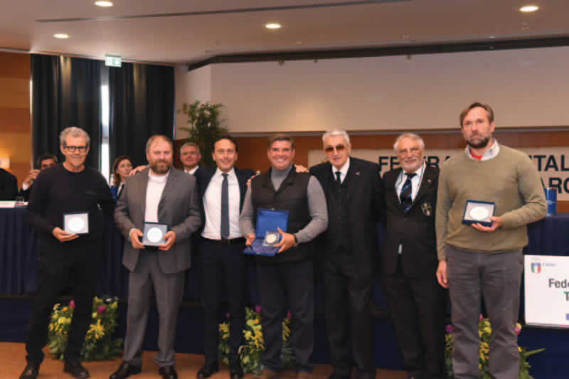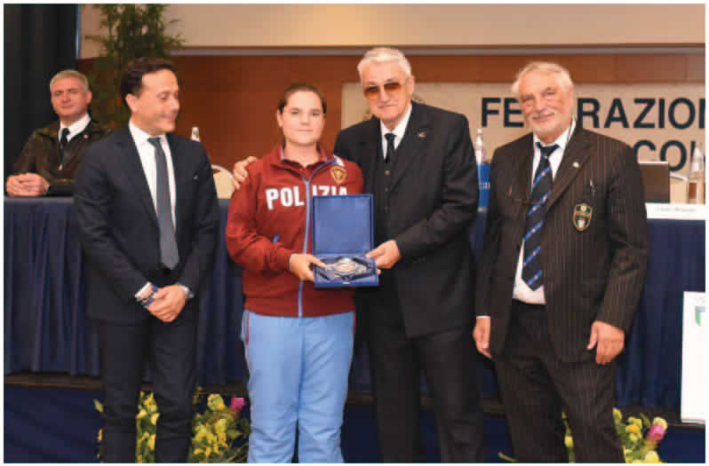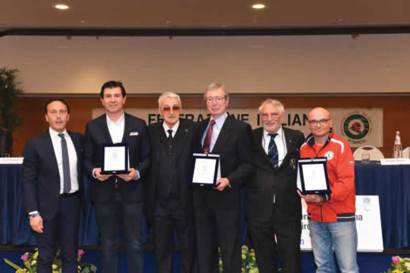 Il Presidente Scarzella, il Segretario Generale Marco Tolu e il Vicepresidente Sante Spigarelli, spalleggiati dall’intero Consiglio Federale, presente fin dal giorno precedente insieme ai Presidenti dei Comitati Regionali per le riunioni del Consiglio e della Consulta, hanno poi proseguito la cerimonia ringraziando e premiando i tecnici e i membri dello staff federale che hanno dato il loro prezioso supporto agli atleti nella conquista di una medaglia internazionale e, successivamente, sono stati dati i riconoscimenti alle società che si sono guadagnate le stelle al merito e che hanno portato il maggior numero di atleti ai Campionati Italiani e il maggior numero di nuovi tesserati.