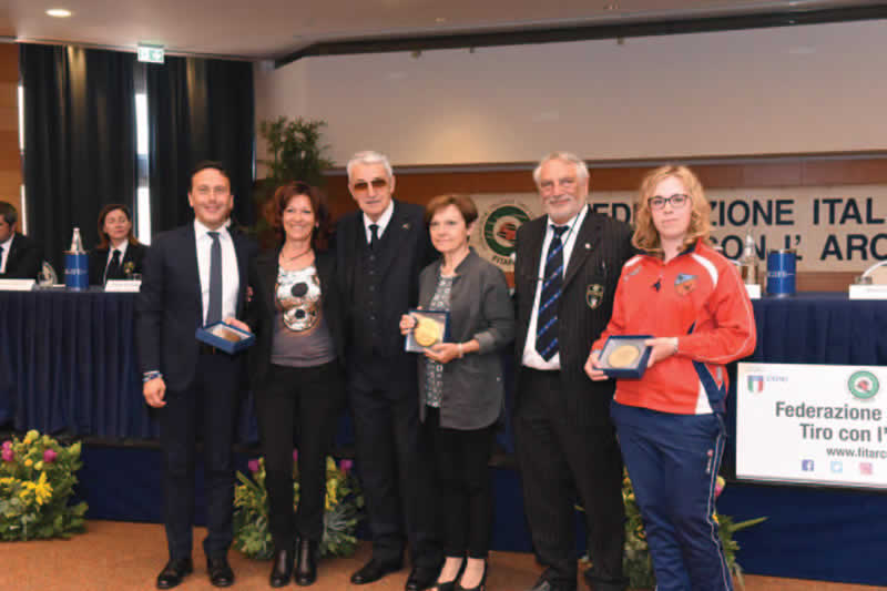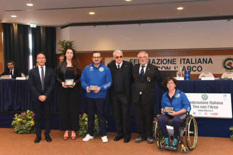 L’Assemblea è stata chiusa dopo la consegna di altri premi riservati a diverse autorità presenti. Naturalmente hanno ricevuto il ringraziamento dei presenti Carlo Mornati (Segretario Generale Coni e Presidente di Assemblea), Alvio La Face (Vicepresidente Assemblea), Raffaella Valeri (Presidente Commissione Verifica Poteri), Pierluigi Matera (Commissario Ad Acta), Alessandra Bruni (Presidente Corte d’Appello Federale), Michele Vellano (Procuratore Federale) e l’avvocato Marco Naddeo. Sono poi stati chiamati davanti al tavolo dei relatori gli ex consiglieri federali Stefano Vettorello e Nino Oddo, il giornalista Ugo Russo, il Segretario Generale uscente di World Archery Europe Marinella Pisciotti, il responsabile degli Organi Collegiali CONI Alessandro Cherubini e naturalmente tutti i rappresentanti dei Gruppi Sportivi Militari: Mariano Salvatore (Gruppo Sportivo Fiamme Azzurre), Milko Pieri (Centro Sportivo Aeronautica Militare), Francesco Montini (Gruppo Sportivo Della Polizia Di Stato – Fiamme Oro) e Domenico Lafaia (Marina Militare Centro Sportivo Tiro Con l’Arco).