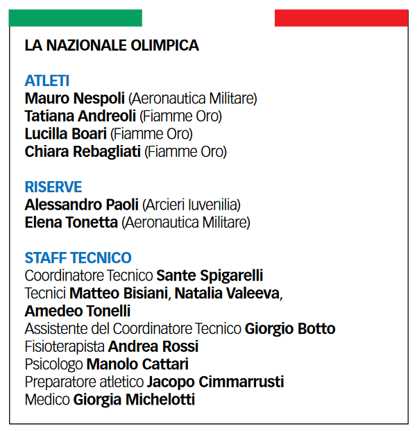 AZZURRE FERMATE DALLA COREA – Dopo la delusione per l’eliminazione, Mauro Nespoli non recede di un millimetro e dichiara alla stampa che, anche se l’avvio è negativo, lui è a Tokyo per portare a casa una medaglia e punta a riuscirci nell’individuale, visto che non ha una squadra per competere. Prima però ci sono le tre azzurre che domenica 25 luglio, dopo aver ottenuto l’8° punteggio in qualifica, tentano di ripetere le prestazioni di Parigi dove avevano ottenuto il pass. Tatiana Andreoli, Lucilla Boari e Chiara Rebagliati superano 5-3 agli ottavi la Gran Bretagna (Bettles, Folkard, Pitman), una bella rivincita visto che il trio britannico le aveva battute ai Mondiali del 2019 qualificandosi per Tokyo proprio ai danni dell’Italia. Purtroppo il tabellone propone poi la Corea del Sud ai quarti. Le campionesse uscenti, in campo con An, Jang e Kang, vincono 6-0 (58-54, 56-52, 56-49) e corrono a conquistare l’oro battendo in finale la Russia con un altro 6-0. Inutile stupirsi, visto che le coreane da Seul ’88 a oggi non hanno mai mancato un appuntamento col gradino più alto del podio.