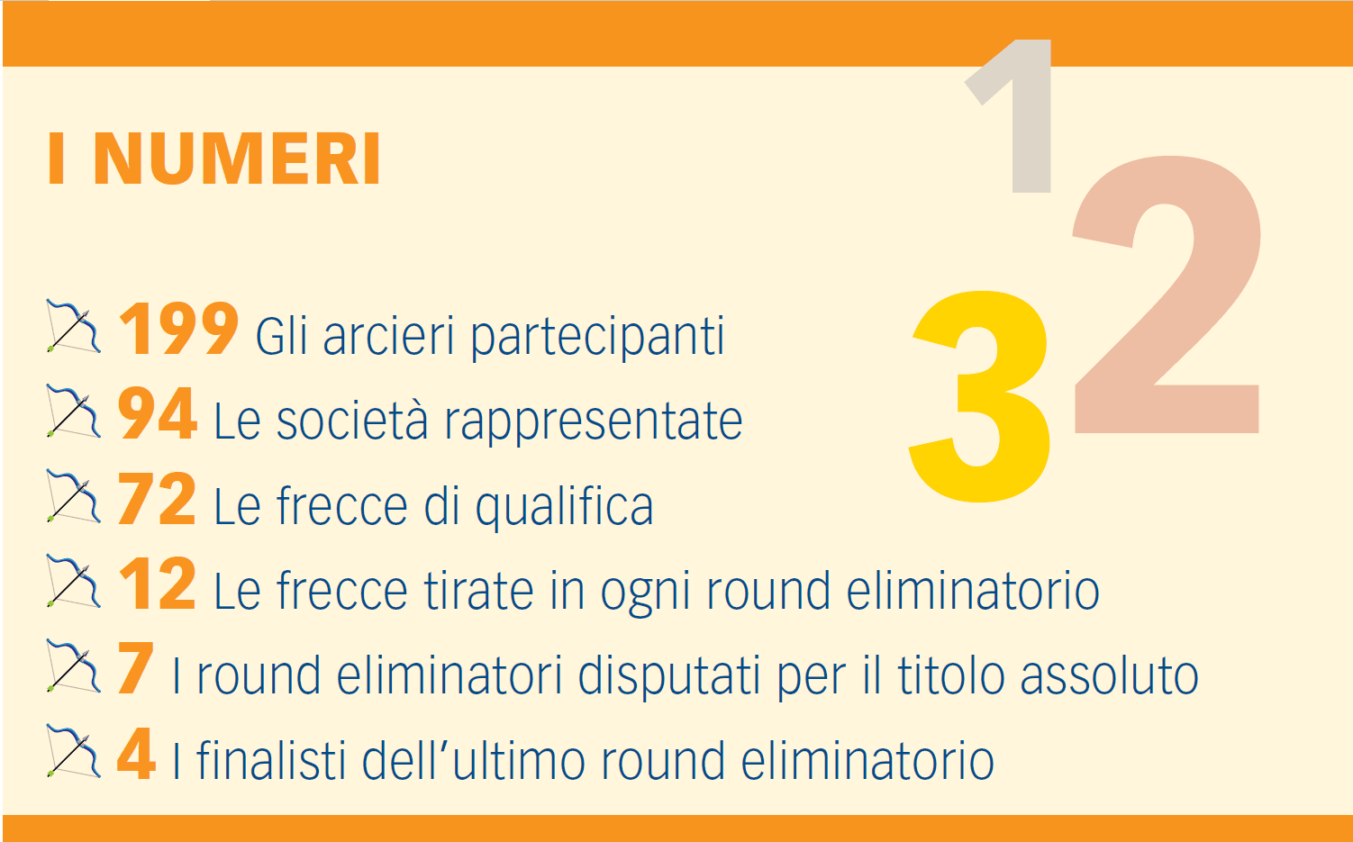 Hanno invece disputato i round eliminatori a parte gli atleti della categoria allievi, che tiravano alla distanza di 40 metri e gli arcieri della categoria ragazzi, che tiravano a 25 metri.