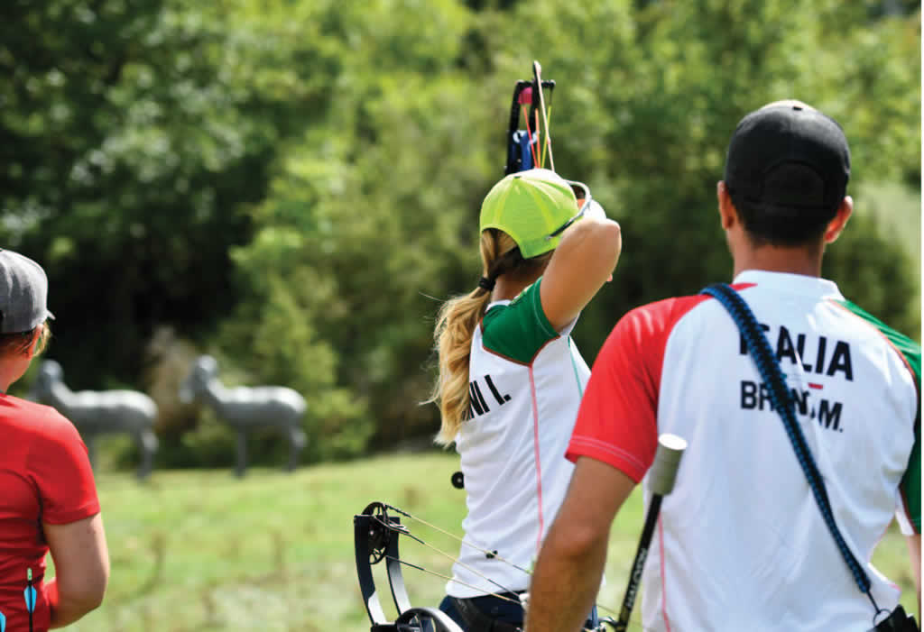 Novità anche per l’art. 4.5.3.3.6 Gli incontri della fase eliminatoria si disputano su 6 bersagli posti a distanze conosciute. Saranno disponibili tutte le visuali (per la disposizione dei percorsi per le eliminatorie, si veda la nota della Commissione WA Campagna e 3D). Gli atleti tireranno simultaneamente. Nelle fasi eliminatorie se gli atleti sono in un gruppo dove si disputano 2 incontri (4 atleti) allo stesso bersaglio: si disputerà prima l’incontro del primo gruppo in ordine alfabetico. Ad es. quando l’incontro del gruppo B viene disputato insieme all’incontro del gruppo D, l’incontro del gruppo B sarà disputato per primo. Se gli atleti dello stesso gruppo sono U21 o Seniores, i seniores tirano prima.
