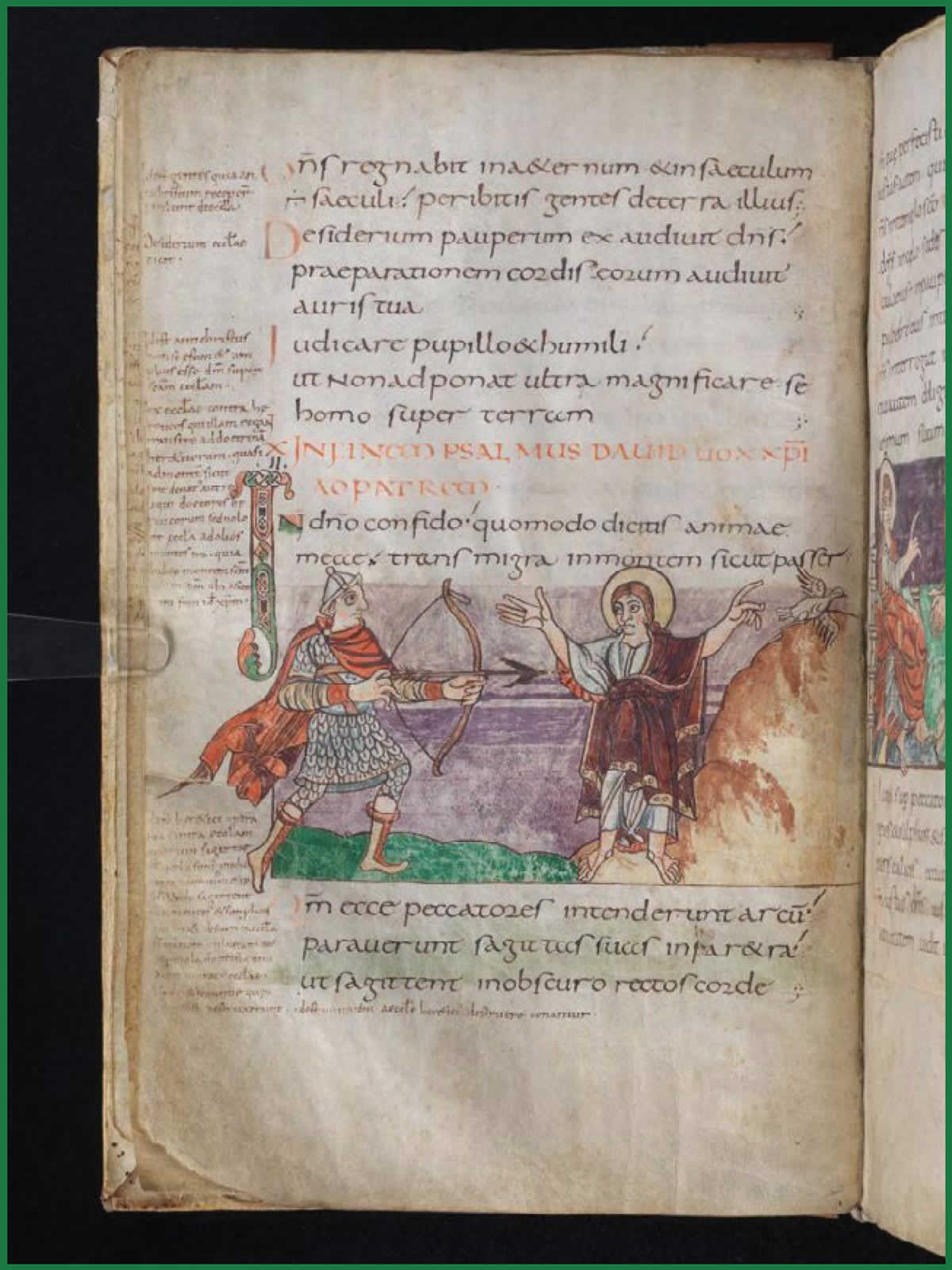 Altra caratteristica di questi archi sono i fori presenti sull’estremità superiore; non sono quelli dove passava la corda, ma dove era fissato un laccetto ad occhiello, che serviva probabilmente ad impedire che la corda scivolasse giù quando l’arco era scarico. Questo particolare laccetto è ben evidente nelle illustrazioni dello Stuttgarter Psalter (consultabile per intero al link https://archive.org/details/StuttgarterPsalter_966).
