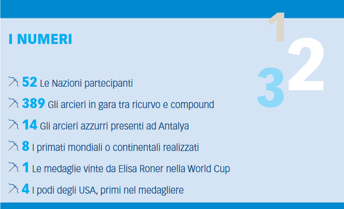In Turchia erano presenti 238 arcieri per il ricurvo e 151 per la divisione compound in rappresentanza di 52 Nazioni. La grande assente è stata la Corea del Sud, che attende la seconda tappa di Shanghai per portare sulla linea di tiro i suoi fuoriclasse. Indipendentemente da questo dato, pur rilevante, la competizione ha goduto di spunti agonistici di primissimo livello. Ma sono stati soprattutto i compound a ottenere risultati rimarchevoli, mentre nell’olimpico sono da sottolineare alcune “prime volte” tra i vincitori, fatto che sottende la continua capacità delle nazionali di tirar fuori nuovi atleti di valore, in grado di impensierire gli arcieri più abituati a calcare i palcoscenici che valgono le medaglie.