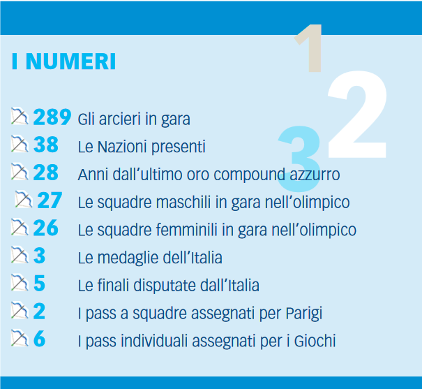 I Campionati Europei del 2024 hanno rappresentato la seconda qualificazione per la prossima edizione dei World Games, in programma in Cina, a Chengdu, nel 2025, assegnando sei posti ai vincitori della medaglia negli eventi compound. Al termine della competizione a festeggiare la qualificazione sono Danimarca, Gran Bretagna, Israele, Paesi Bassi, Turchia e Italia, grazie all’argento di Elisa Roner.Diventano così 10 il numero totale di nazioni dopo due eventi validi per la qualificazione. Sei posti sono stati assegnati infatti anche ai Campionati Panamericani ad inizio aprile, dove il terzo posto della colombiana Sara Lopez è valso l’accesso per quella che probabilmente sarà la sua quarta partecipazione ai World Games.