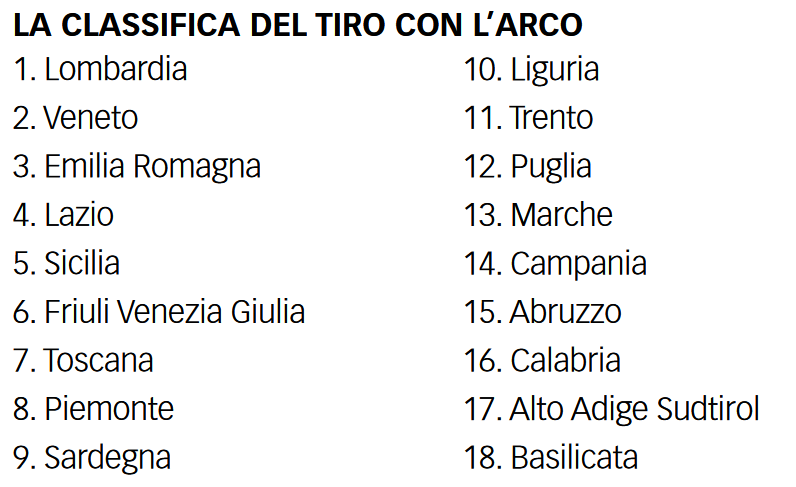 La competizione arcieristica, così come quelle delle altre discipline previste da questo grande evento nazionale, ha contribuito naturalmente ad aggiungere i punti necessari alle squadre dei Comitati Regionali CONI per scalare la classifica finale della manifestazione. Nel 2024 ad arrampicarsi sul gradino più alto del podio è stata l’Emilia Romagna, che certamente ha goduto anche dei punti arrivati con il terzo posto degli arcieri in maglia arancione. A guadagnarsi il secondo e terzo posto sono stati invece i padroni di casa della Sicilia, seguiti dall’ottima performance del Friuli Venezia Giulia.