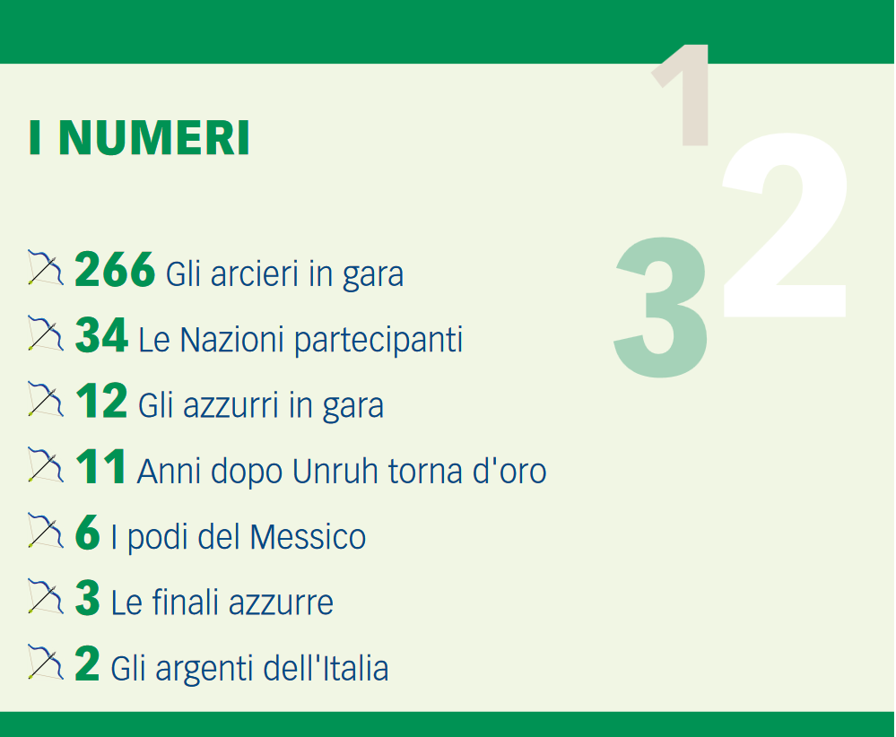 In definitiva, si è trattato di un ottimo esordio internazionale per il gruppo azzurro del compound, vissuto in giornate sicuramente speciali, visto che i match per le medaglie sono stati disputati proprio nelle ore successive all’annuncio dell’inserimento della gara mista di questa divisione ai prossimi Giochi Olimpici.•